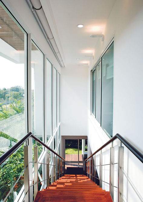 บ้านพักร่วมสมัยโทนสีขาวหลังนี้มีจุดเด่นจากแสงธรรมชาติที่ส่องผ่านช่องแสงติดตายรูปแบบเฉพาะของทางบริษัทวัฒนชัยหัวหมาก ซึ่งมีกรอบเฟรมที่บางแต่สามารถรองรับบานขนาดใหญ่ได้เป็นอย่างดี พร้อมด้วยหน้าต่างบานเปิดที่มีลักษณะสูงโปร่งเป็นพิเศษเพื่อเพิ่มความสวยงาม และยังสามารถเปิดรับลม พร้อมทั้งชื่นชมบรรยากาศของสระบัวบริเวณกลางบ้านได้เป็นอย่างดี