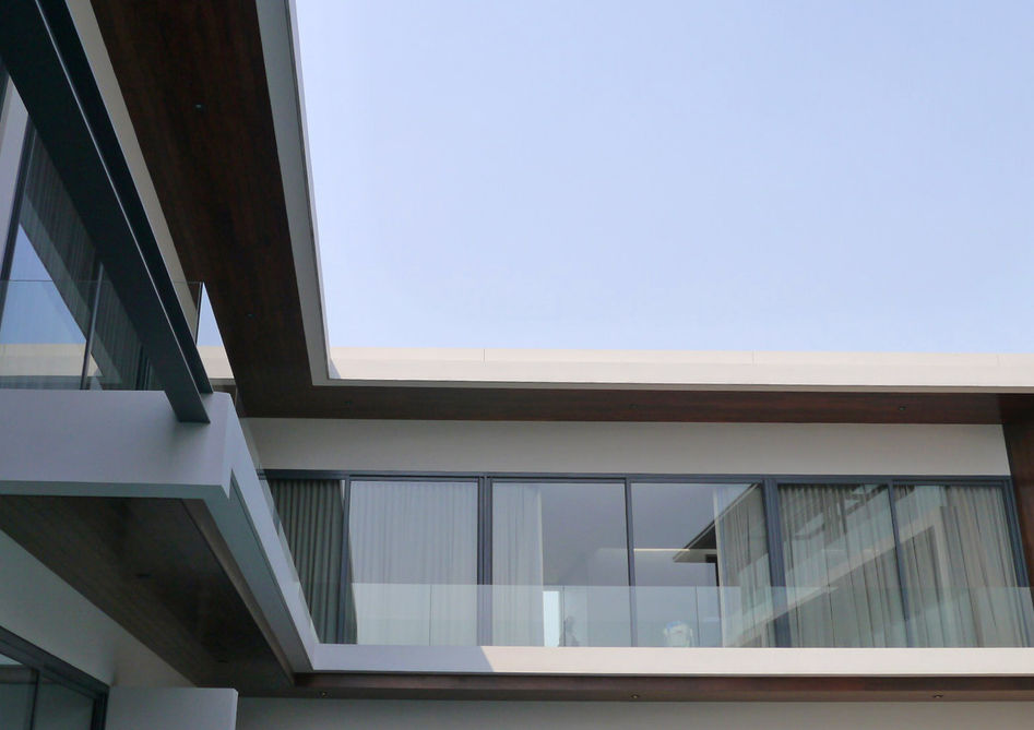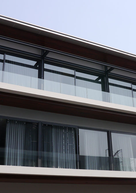บ้านพักอาศัย 4 ชั้นขนาดใหญ่ ที่มีสระว่ายน้ำอยู่กลางชั้น2ของบ้าน โจทย์การออกแบบจึงต้องการให้มีเส้นตั้งของกรอบอลูมิเนียมน้อยที่สุดเพื่อเพิ่มทัศนียภาพทั้งจากภายนอกและภายในอาคาร ดังนั้นบานเลื่อนส่วนใหญ่ของบ้านหลังนี้ มีความกว้างถึงบานละ 3.00 เมตร ความสูงมากกว่า 3.20 เมตร และแต่ละบานมีน้ำหนักหนักกว่า 250 กก.